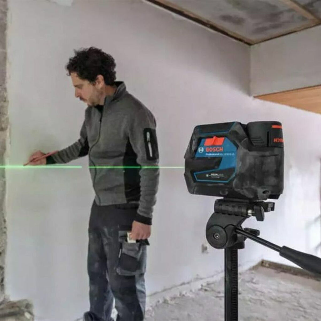 Der kombinierte Bosch GCL 12V-50-22 CG Laser-Nivellierer ist ein hochpräzises Werkzeug, das für Profis und Anwender entwickelt wurde, die zuverlässige Messungen und exakte Ausrichtungen bei ihren Projekten benötigen. Das Gerät zeichnet sich durch einen gut sichtbaren roten Laserstrahl aus, ideal für Innenarbeiten bei guter Sicht und unterschiedlichen Lichtverhältnissen. Das Gehäuse ist mit Gummimaterial versehen, was zusätzlichen Schutz gegen Stöße bietet und einen sicheren, komfortablen Griff während der Nutzung gewährleistet. Im Lieferumfang ist die RM 20 Halterung enthalten, die eine stabile Befestigung ermöglicht und flexible Einstellungen für eine präzise Positionierung des Laser-Nivellierers auf jeder Oberfläche erlaubt. Zudem wird eine Bosch GBA 12V 2.0Ah Batterie mitgeliefert, die eine lange Laufzeit für ausgedehnte Arbeitstage garantiert. Alternativ kann das Gerät auch mit Alkalibatterien betrieben werden, was die Vielseitigkeit in verschiedenen Einsatzbereichen erhöht. Das Set wird in einer praktischen L-Boxx AAARI06143 Transport- und Aufbewahrungsbox geliefert, die den sicheren Transport und Schutz des Geräts gewährleistet. Dank seines kompakten Designs und der kombinierten Funktionen projiziert dieser Laser-Nivellierer gleichzeitig horizontale, vertikale Linien und Referenzpunkte, was das Nivellieren, die Montage von Konstruktionen oder Heimwerkerarbeiten mit präziser Ausrichtung erleichtert. Die Kombination aus Zuverlässigkeit, Robustheit und Genauigkeit macht dieses Bosch-Modell zu einer umfassenden Lösung für exakte Messungen und garantiert professionelle Ergebnisse bei jedem Projekt.