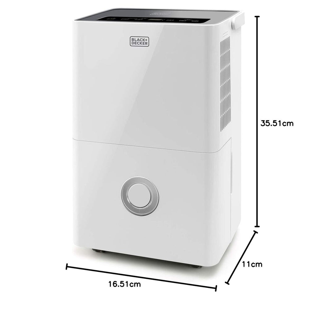 Der Entfeuchter Black & Decker ES9540010B in elegantem Weiß ist eine effektive und vielseitige Lösung zur Verbesserung der Luftqualität in Innenräumen und eignet sich für Räume bis zu 40 m². Entwickelt für einen leisen Betrieb mit einem Geräuschpegel von nur 43 dB, kann dieses Gerät störungsfrei, auch nachts oder in Wohn- und Büroräumen, betrieben werden. Seine Entfeuchtungsleistung von bis zu 20 Litern pro Tag sorgt für eine effiziente Feuchtigkeitsreduzierung und hilft, Probleme wie Schimmel, Gerüche oder Kondensation zu vermeiden, während der 4-Liter-Wassertank eine gute Autonomie bietet, bevor er geleert werden muss. Ausgestattet mit einem HEPA 13-Filter trägt es nicht nur zur Entfernung von Staubpartikeln und Allergenen aus der Luft bei, sondern ist auch ideal für Nutzer, die eine gesündere und schadstofffreie Umgebung wünschen. Der Betrieb mit 240 V macht es kompatibel mit den meisten Haushaltsstromnetzen, und das kompakte, unauffällige Design erleichtert die Integration in jeden Raum, ohne die Einrichtung zu stören. Dieses Modell überzeugt durch die Kombination einer starken Entfeuchtungsleistung mit einer hocheffizienten Filterung und ist somit ideal zur Kontrolle der Luftfeuchtigkeit und zur Verbesserung der Luftqualität. Zusammengefasst ist der Black & Decker ES9540010B eine praktische und zuverlässige Wahl für Nutzer, die Komfort und Wohlbefinden in ihrem Zuhause oder Büro suchen.