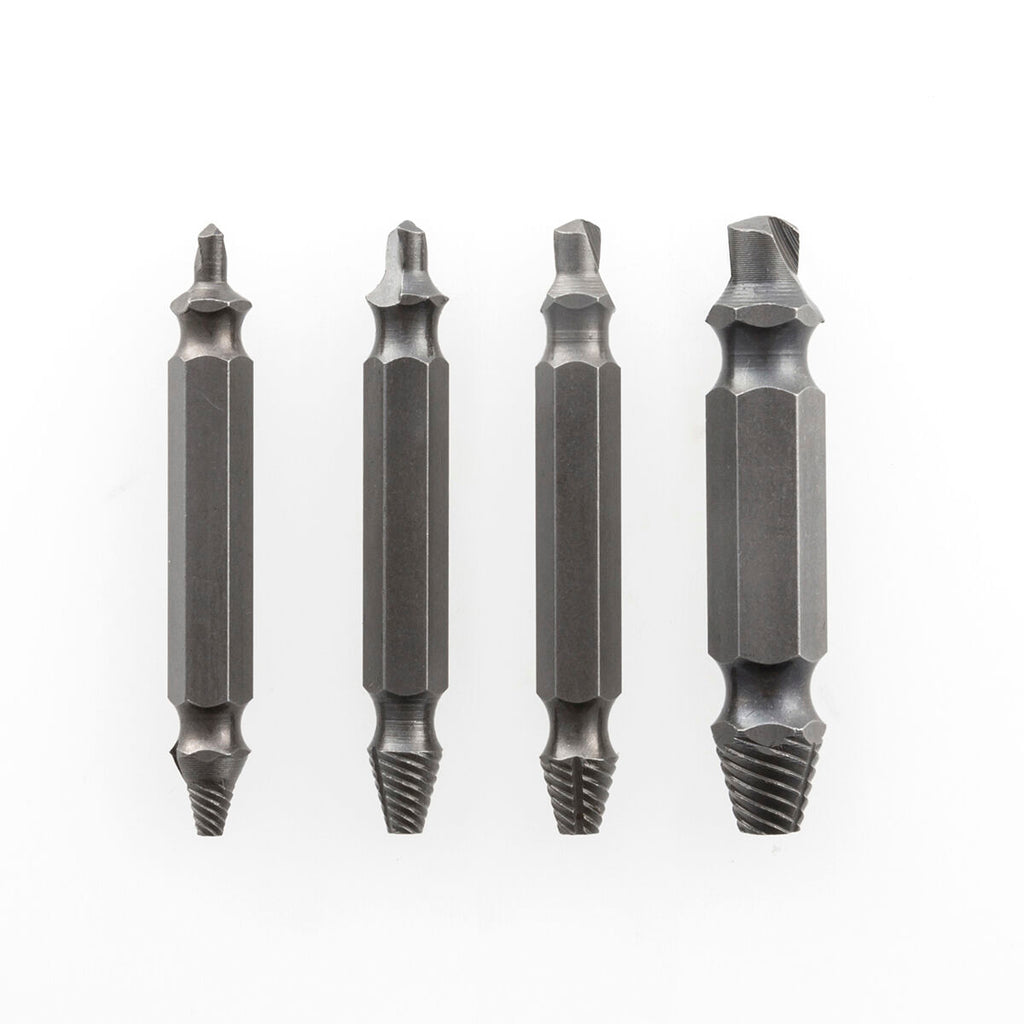 Sehr praktisch und tauglich, um defekte und/oder verrostete Schrauben ganz einfach und schnell zu entfernen. Jedes der Doppel-Schrauberbits durchdringt den Schraubenkopf, wodurch die Schraube dann mühelos herausgedreht werden kann.