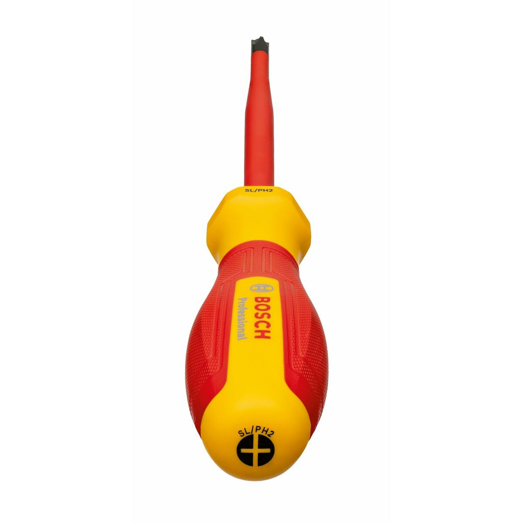 Das Schraubendreher-Set von BOSCH ist für Profis und Heimwerker konzipiert, die sichere und zuverlässige Werkzeuge für elektrische und präzise Arbeiten benötigen. Dieses Set enthält einen VDE-Schraubendreher mit zertifizierter Isolierung bis 1000 V, der Schutz vor Stromschlägen bei Arbeiten unter Spannung bietet und die höchsten Sicherheitsstandards erfüllt. Der ergonomische Griff besteht aus thermoplastischem Elastomer, einem Material, das einen komfortablen und rutschfesten Halt gewährleistet, die Kontrolle erleichtert und Ermüdung bei längerem Gebrauch reduziert. Das Design des Schraubendrehers mit einer SL/PH2-Spitze von 125 mm ist vielseitig für Anwendungen in Elektronik, Elektrotechnik und industrieller Wartung. Die rote Farbe ermöglicht eine einfache Identifikation in Werkstatt oder Werkzeugkoffer. Dieses Produkt mit dem renommierten BOSCH-Qualitätssiegel ist eine zuverlässige und professionelle Wahl für Anwender, die Wert auf Sicherheit und Präzision bei Handwerkzeugen legen. Mit diesem Set ist eine optimale Leistung bei Aufgaben garantiert, die Geschicklichkeit und zertifizierten elektrischen Schutz erfordern.